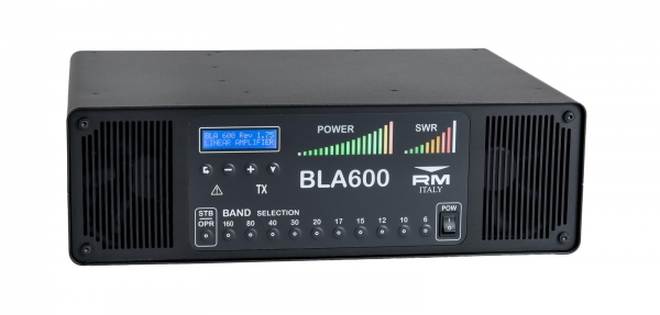 O Amplificador Solid State BLA600 opera em banda larga. É compacto e automático, funcionando nas bandas de radioamador de 160 a 6 metros (1,8 a 54MHz). Necessita de apenas 20 a 25W de potência de excitação de 80 a 10 metros, 30 a 40W para uma saída de 500W em 160 e 6 metros.