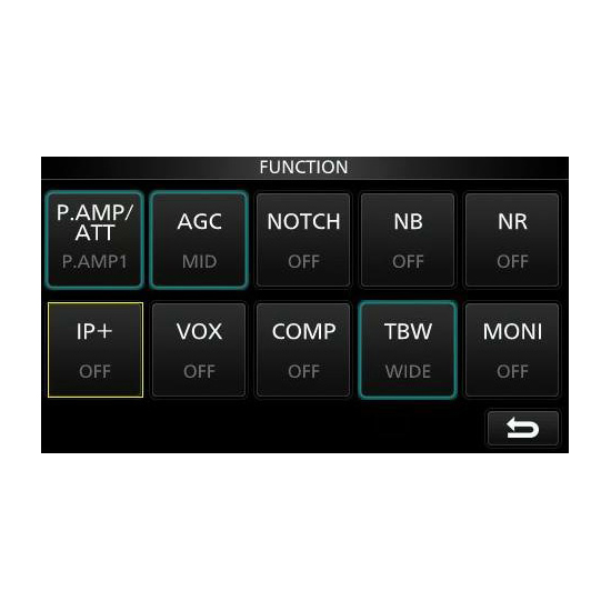 O IC-7300 tem um grande display LCD TFT (Tela de película fina sensível ao toque) colorido que pode ser usado como um tela touch screen. Esta interface de fácil utilização proporciona operação intuitiva. Usando a tela sensível ao toque, você pode facilmente definir várias funções e editar conteúdos da memória.
